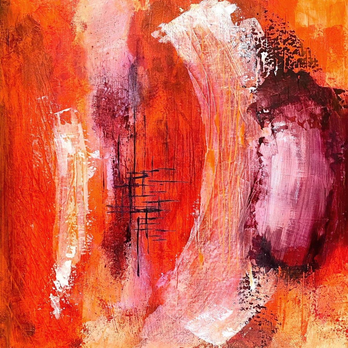 Acrylverf op gegrafeerd MDF-paneel Onderwerp: impact van coronavirus op de samenleving. Het einde of een nieuw begin?