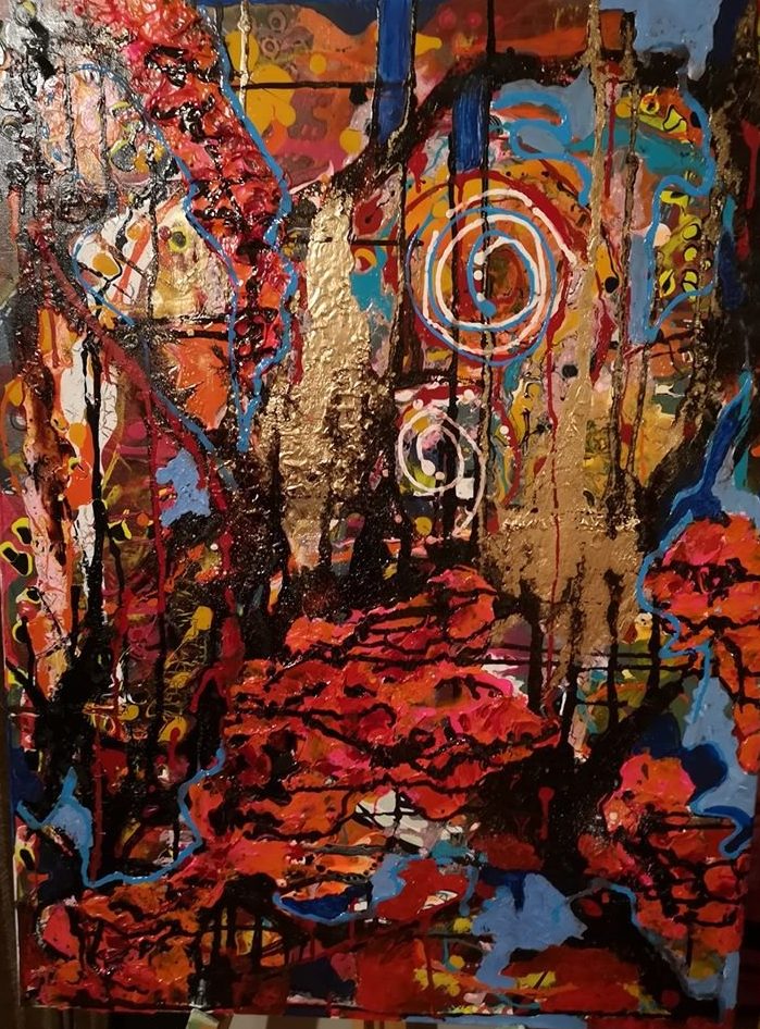 Acryl en acrylinkt op canvas
