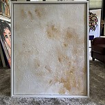 Abstract schilderij 80x 100x 3,5 cm. Incl. Zwarte lijst 85x 105. Gouden regen. Mixed media. Verwerkt bladgoud in schilderij.