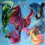 Een kluwen van kleurrijke verfstrepen van verschillende kleuren die hun eigen vorm hebben en voor vrijheid staan